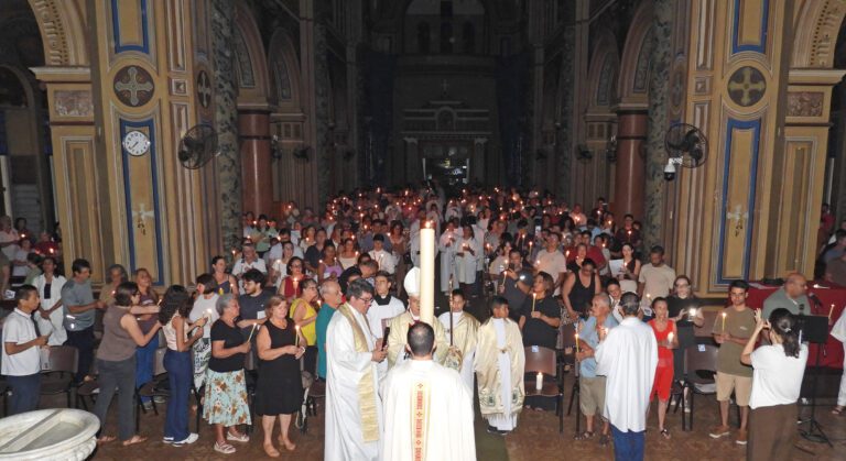 A Catedral Metropolitana de São Sebastião, em Ribeirão Preto, acolheu na manhã da Quinta-feira Santa, 02 de abril, às 9 horas, os padres, diáconos, seminaristas, candidatos da Escola Diaconal, fiéis da Arquidiocese de Ribeirão Preto para a concelebração eucarística da Missa Crismal