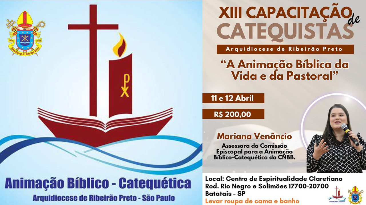 A Comissão Arquidiocesana Bíblico-Catequética realiza nos dias 11 e 12 de abril, a XIII Capacitação de Catequistas. O evento tem o tema: “A Animação Bíblica da Vida e da Pastoral” e a assessoria de Mariana Venâncio, Assessoria da Comissão Episcopal para a Animação Bíblico-Catequética da CNBB.