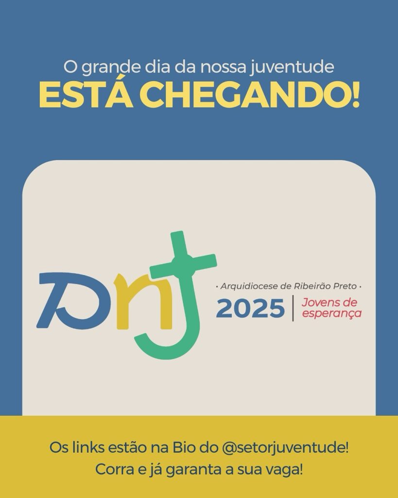 🔗 Inscrições abertas no link: https://www.sympla.com.br/evento/dnj-2025-jovens-peregrinos-de-esperanca/3092173