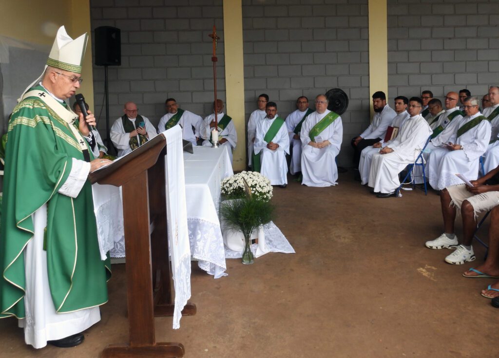 Na homilia, dom Moacir, inicialmente refletiu alguns trechos da mensagem do Papa Leão XIV para o Dia Mundial dos Pobres. “Neste Domingo, em comunhão com o Papa Leão XIV e toda Igreja, vivemos o IX Dia Mundial dos Pobres. Para este ano, o Papa escolheu como tema: ‘Tu és a minha esperança’, dentro do Jubileu Peregrinos de Esperança. Afirma o Santo Padre: ‘No meio das provações da vida, a esperança é animada pela firme e encorajadora certeza do amor de Deus, derramado nos corações pelo Espírito Santo. Por isso, ela não decepciona (cf. Rm 5, 5) e São Paulo pode escrever a Timóteo: ‘Pois se nós trabalhamos e lutamos, é porque pomos a nossa esperança no Deus vivo’ (1 Tm 4, 10). O Deus vivo é, verdadeiramente, o ‘Deus da esperança’ (Rm 15, 13), que em Cristo, pela sua morte e ressurreição, se tornou a “nossa esperança” (1 Tm 1, 1). Não podemos esquecer que fomos salvos nesta esperança, na qual precisamos permanecer enraizados’.”