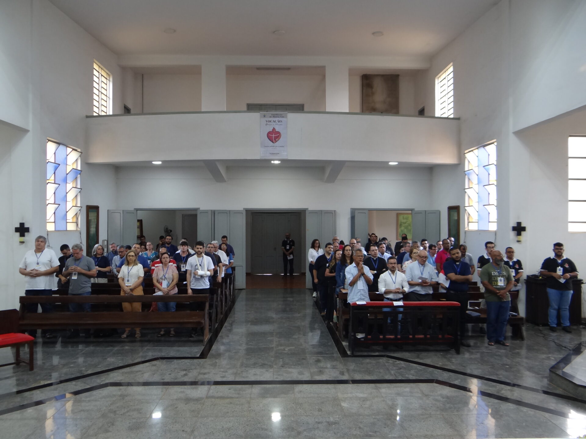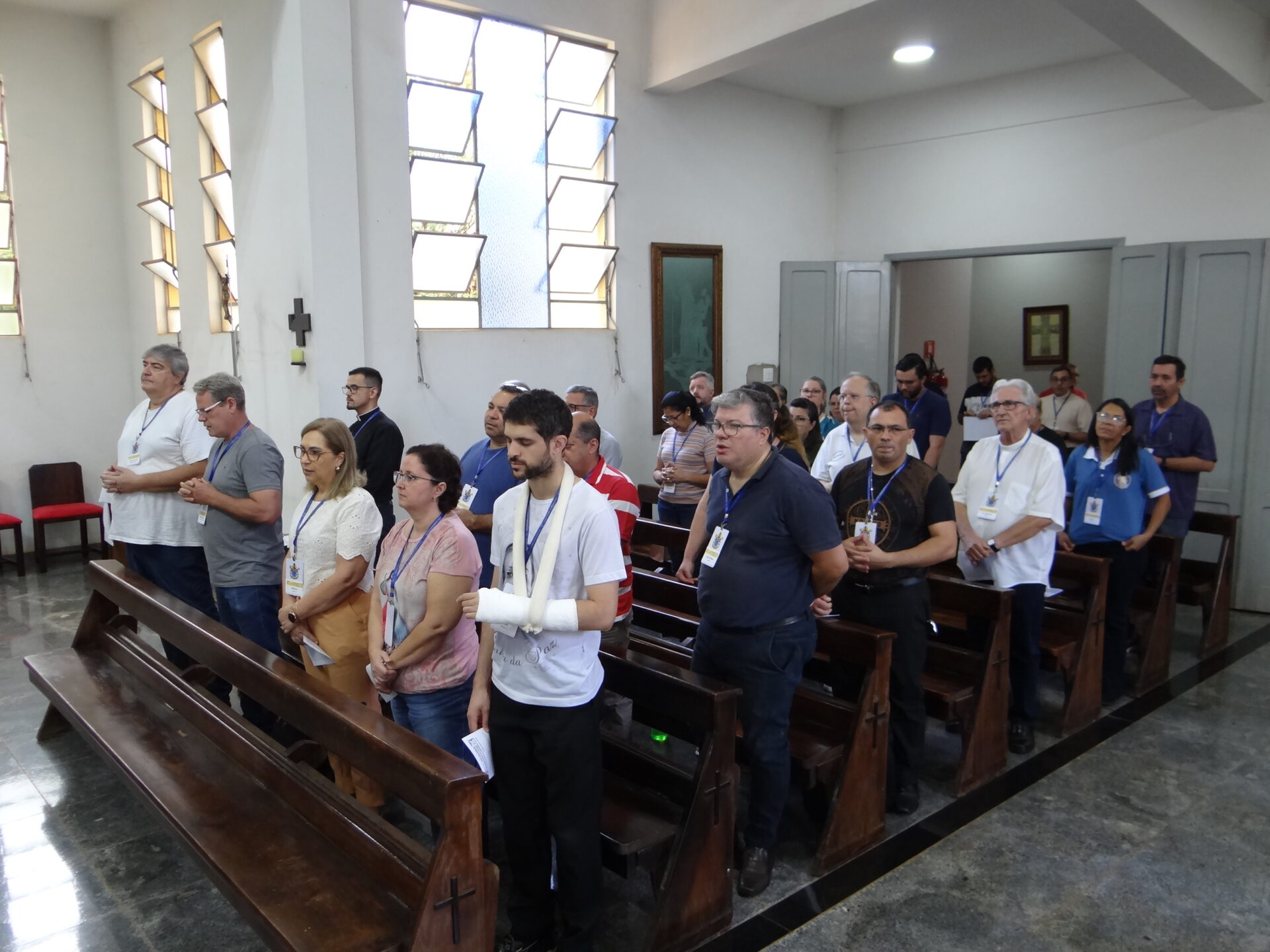A reunião eclesial começou com a oração inicial na Capela Central do Seminário Maria Imaculada. A oração recordou a caminhada sinodal da Igreja Particular de Ribeirão Preto, ao rememorar as Concentrações Forâneas, o Terceiro Ano Vocacional da Igreja no Brasil, os 10 anos de ministério episcopal de Dom Moacir na Arquidiocese de Ribeirão Preto, e propôs um momento de silêncio, escuta e oração, para o início dos trabalhos reflexivos em grupos à luz do Espírito Santo como citado no texto da oração inicial: “Hoje, enquanto Igreja Particular de Ribeirão Preto, aqui nos reunimos para celebrar nossa Pré Assembleia Arquidiocesana de Pastoral. Sabemos que ao longo deste ano, construímos esse momento, especialmente por nossa participação nas concentrações forâneas realizadas no primeiro semestre, recordando também os 10 anos de pastoreio de Dom Moacir em nossa Arquidiocese. Nossos esforços e dedicação deste dia, convergem para um grande momento de oração, comunhão, partilha. Como Igreja particular, queremos escutar o que o Senhor nos diz, o que Ele espera de nós e como podemos ser seus colaboradores na instauração de seu Reino entre nós!”