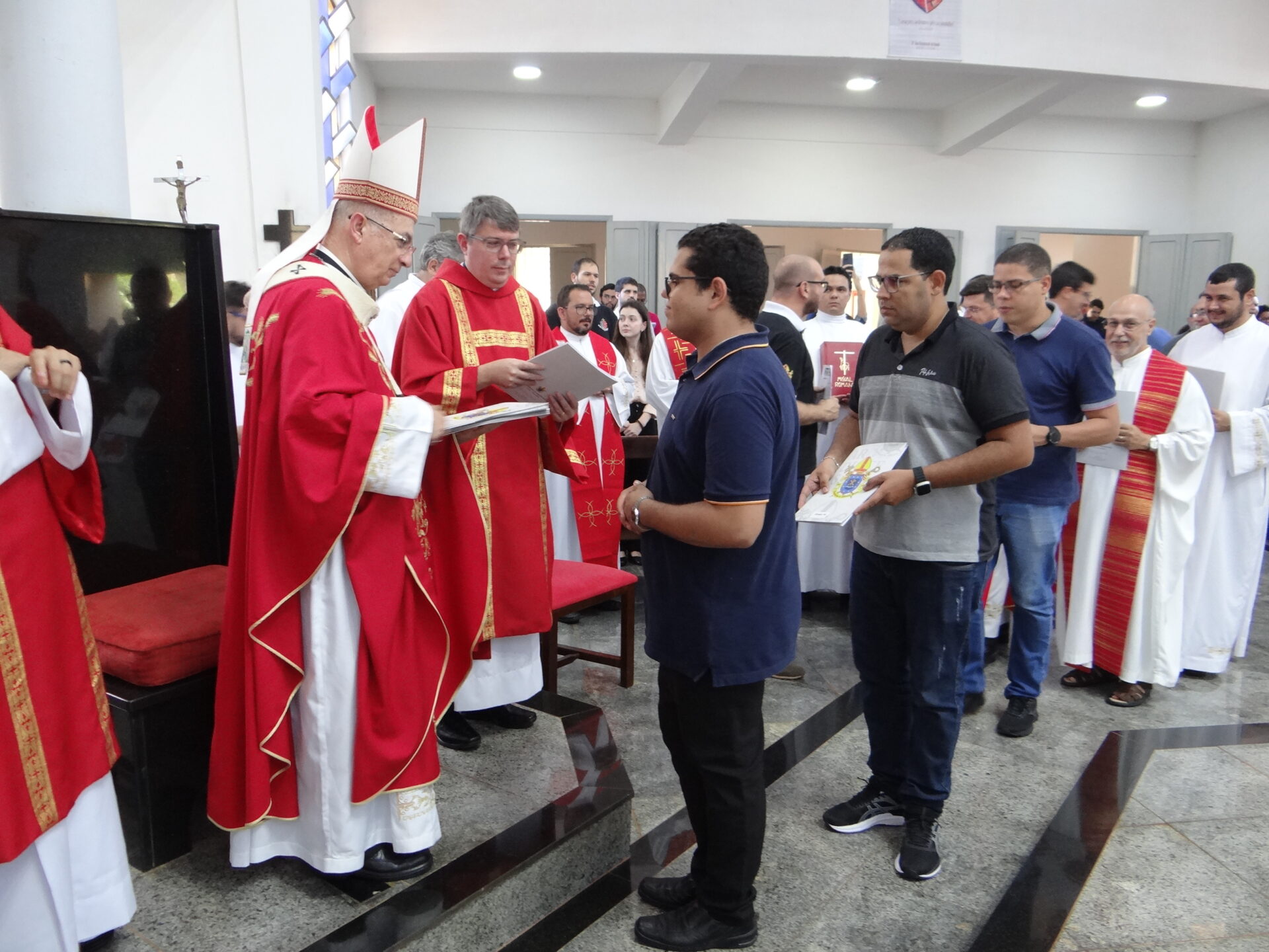 Na introdução da homilia, dom Moacir, destacou a importância de tomarmos consciência de que somos todos batizados, e isso nos leva a sermos corresponsáveis na caminhada da Igreja sinodal. “Queridos irmãos, queridas irmãs, no santo batismo, queridos irmãos e irmãs na vida consagrada, queridos irmãos no ministério ordenado, celebrando a festa dos apóstolos São Judas Tadeu e São Simão, queremos deixar a Palavra de Deus nos orientar: ‘Vós fostes integrados no edifício de Deus, sois a família de Deus’, não sei se nós já tomamos consciência dessa afirmação de São Paulo, talvez intelectualmente sim, mas na prática, no dia a dia, na missão, na pastoral, na evangelização, nós vivemos como família de Deus? Estamos vivendo a Igreja sinodal, hoje tivemos um dia especial em nossa Igreja Particular, de experiência de escuta, de experiência de família, experiência e desejo de buscar, perceber, o que o Senhor espera de nós nesta etapa de nossa história enquanto Igreja Particular. Sois a família de Deus, vale a pena a gente deixar essa afirmação penetrar o mais profundo do nosso ser, não só como uma verdade, mas como algo que nos impulsiona a vivermos de fato como família. Fazer que nosso presbitério seja de fato uma família, e nós somos essa família de Deus, nosso clero, nosso laicato, nossos consagrados e consagradas, todos nós formamos essa família de Deus”, frisou o arcebispo.