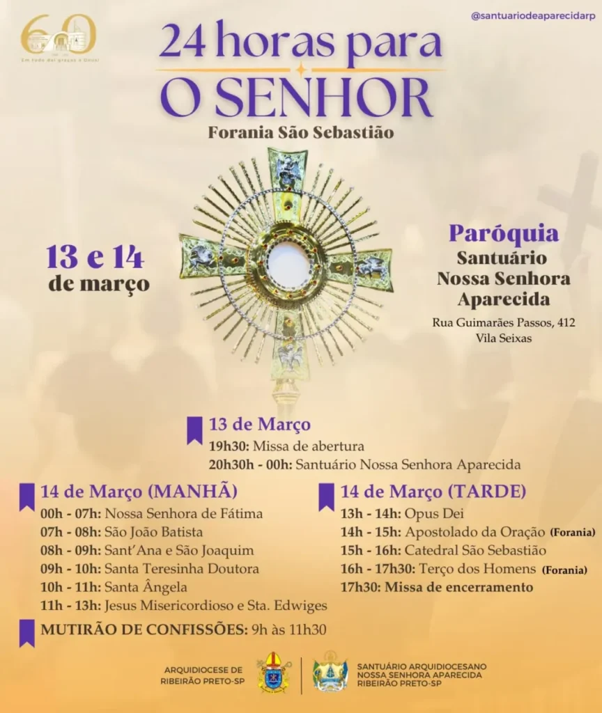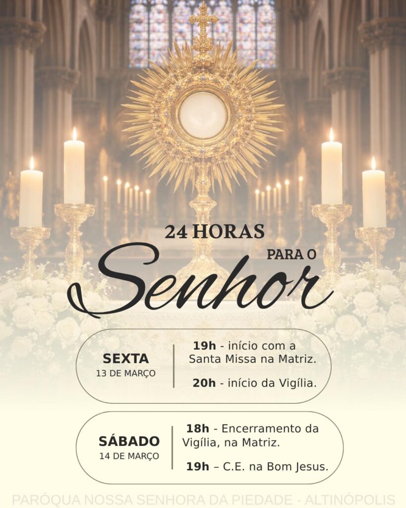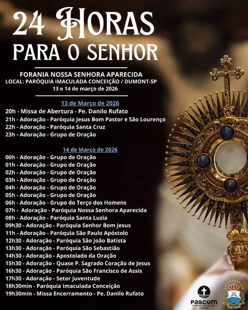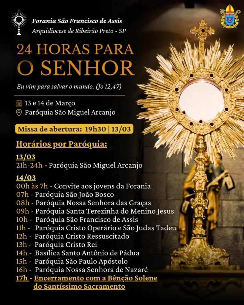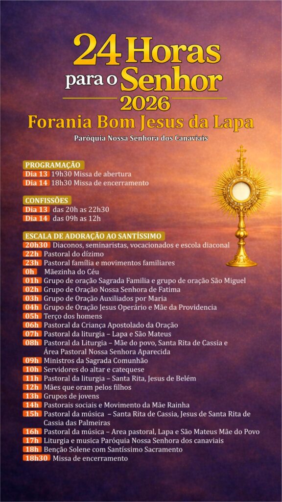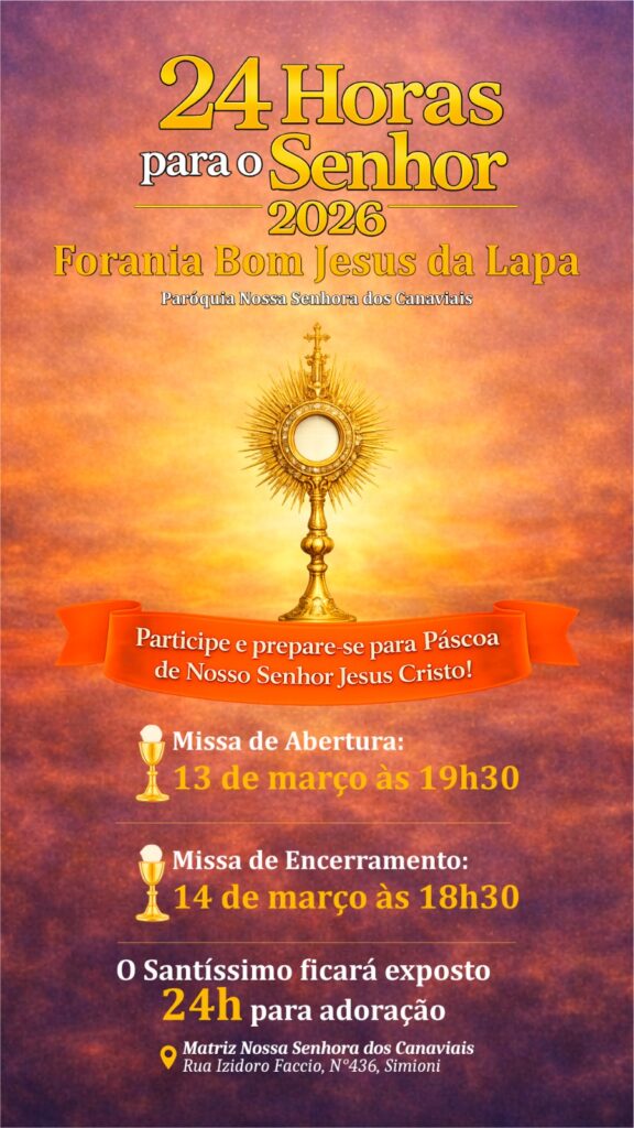 A décima terceira edição da iniciativa “24 horas para o Senhor”, promovida pelo Dicastério para Evangelização, ocorre na sexta e sábado precedente ao IV Domingo da Quaresma, neste ano de 2026, será vivenciada nos dias 13 e 14 de março. A edição deste ano será realizada por cidades ou foranias.