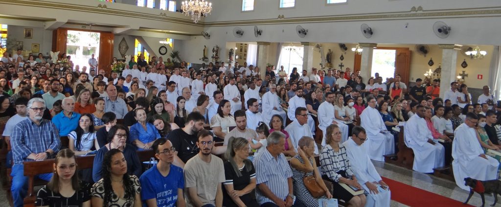 Dom Moacir na continuidade da homilia acrescentou: “Anunciando aos outros a Palavra divina, sejam também dóceis ao Espírito Santo, recebendo-a de coração aberto, e meditando-a assiduamente, a fim de amá-la cada vez mais. Manifestem pelas vossas vidas Jesus Cristo, nosso Senhor. Caros filhos. Tendo sido escolhidos para o ministério de Acólito, vocês participarão de modo especial do mistério da Igreja, que tem por ápice e fonte a Eucaristia, pela qual se edifica e cresce o povo de Deus. Hoje é confiada a vocês a missão de auxiliar os presbíteros e diáconos no desempenho de suas funções, e também a de distribuir a sagrada Comunhão aos fiéis, mesmo enfermos, como ministro extraordinário. Designados de modo especial para este ministério, vocês deverão esforçar-se para viver intensamente do sacrifício do Senhor, conformando-vos mais perfeitamente a Ele. Procurem entender o sentido profundo e espiritual daquilo que vocês vão fazer, oferecendo-vos todos os dias como oblação espiritual, agradável a Deus por Jesus Cristo”.