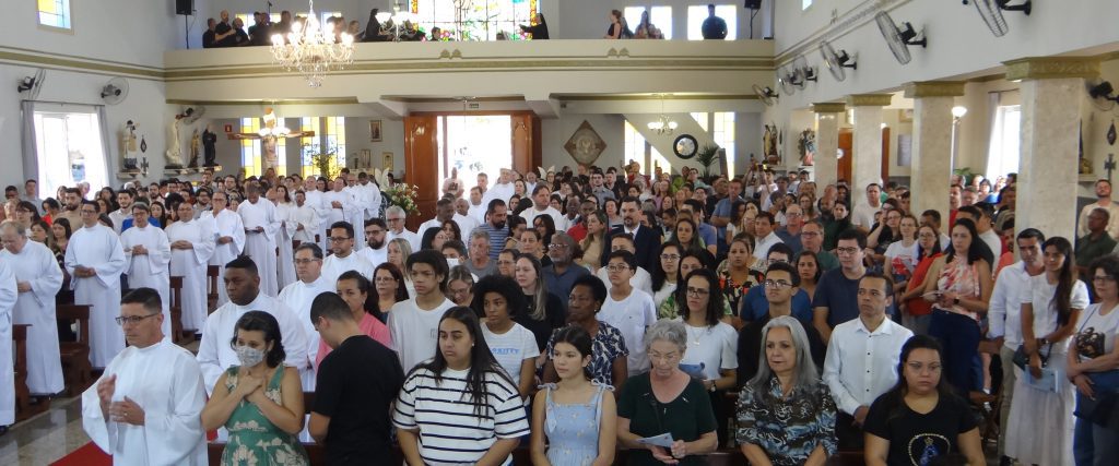 Os 33 candidatos ao diaconato permanente da quarta turma da Escola Diaconal Arquidiocesana São Lourenço, receberam os ministérios de Leitor e Acólito, em 18 de agosto, Solenidade da Assunção da Bem-aventurada Virgem Maria, 20ª Semana do Tempo Comum, na paróquia Santo Antônio de Pádua, Bento Quirino, em São Simão.
