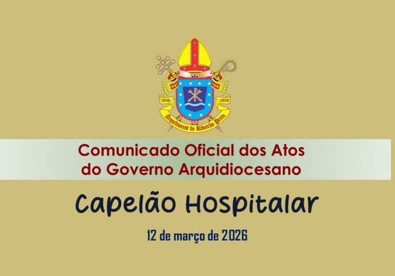 Comunicado Oficial dos Atos do Governo Arquidiocesano – Capelão Hospitalar A Chancelaria da Arquidiocese de Ribeirão Preto torna pública as determinações de Dom Moacir