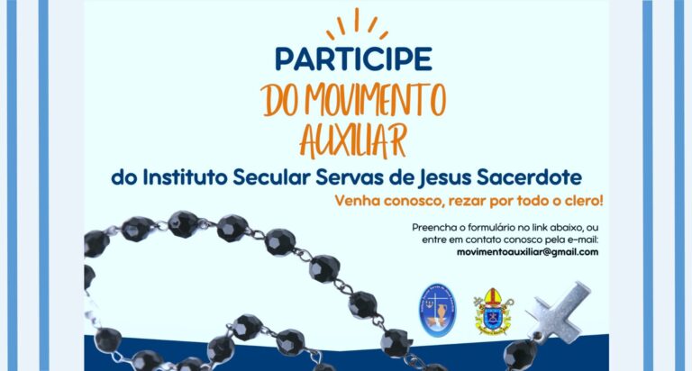 O Instituto Secular Servas de Jesus Sacerdote convida você a participar do Movimento Auxiliar (Opus in Auxilium)! Venha fazer essa experiência conosco, se unindo a nós, em oração por todo o clero