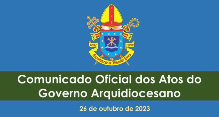 A Chancelaria da Arquidiocese de Ribeirão Preto torna pública as determinações de Dom Moacir Silva, Arcebispo Metropolitano de Ribeirão Preto, datada de 26 de outubro de 2023.