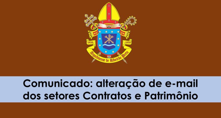 A Arquidiocese de Ribeirão Preto – Cúria Metropolitana comunica a alteração e endereço eletrônico (e-mail) para solicitação e encaminhamento de serviços nos setores Contratos e Patrimônio.