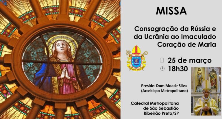 Missa e Ato de consagração da Rússia e Ucrânia ao Imaculado Coração de Maria na Catedral de Ribeirão Preto, na sexta-feira, 25 de março, às 18h30