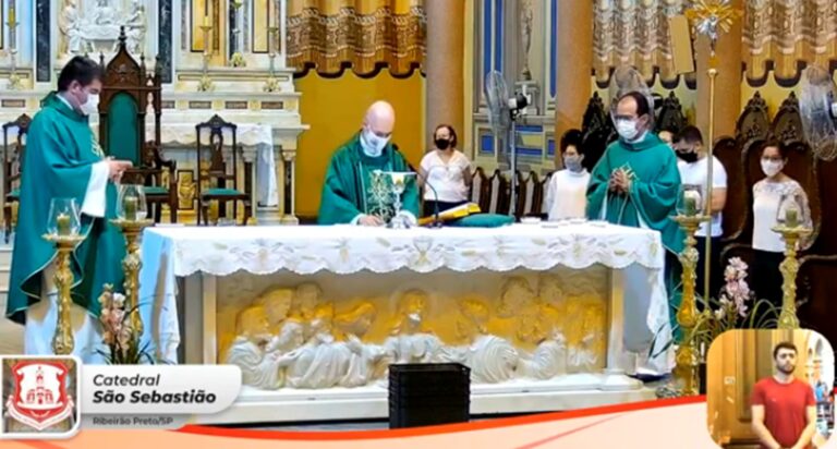 A Catedral Metropolitana de São Sebastião, em Ribeirão Preto, sediou no domingo, 03 de outubro, a Missa de Abertura do Mês Missionário. O arcebispo Dom Moacir Silva presidiu a Concelebração Eucarística que contou com os concelebrantes: Padre Francisco Jaber Zanardo Moussa, Pároco; Padre Marcus Vinícius de Miranda, assessor do Conselho Missionário Diocesano (Comidi) e referencial do Pilar da Ação Missionária, e os serviços litúrgicos do Diácono Transitório Rodrigo.
