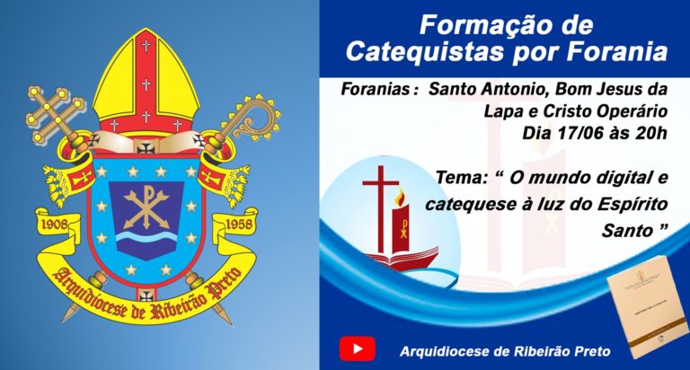 A Equipe Arquidiocesana da Animação Bíblico-Catequética promove no dia 17 de junho (quinta-feira), às 20 horas, a formação para os Catequistas das paróquias das Foranias Santo Antônio, Bom Jesus da Lapa e Cristo Operário. O tema será “O mundo digital e Catequese à Luz do Espírito Santo” com base no Diretório para Catequese.
