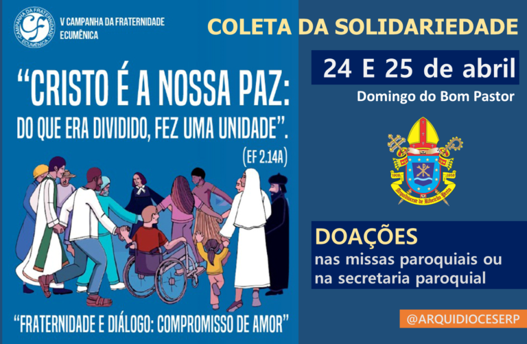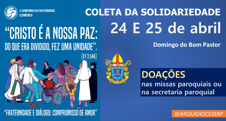 Arquidiocese realiza a Coleta da Solidariedade no Domingo do Bom Pastor A Coleta da Solidariedade, gesto concreto de caridade, fraternidade e partilha, da Campanha