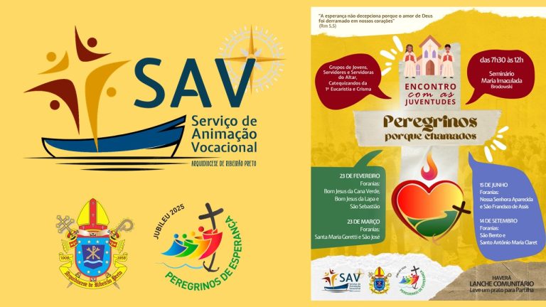 Com o tema: “Peregrinos porque chamados” e o lema: “A esperança não decepciona, porque o amor de Deus foi derramado em nossos corações” (Rm 5, 5), o Serviço de Animação Vocacional da Arquidiocese de Ribeirão Preto divulgou as datas dos “Encontros com as Juventudes 2025”