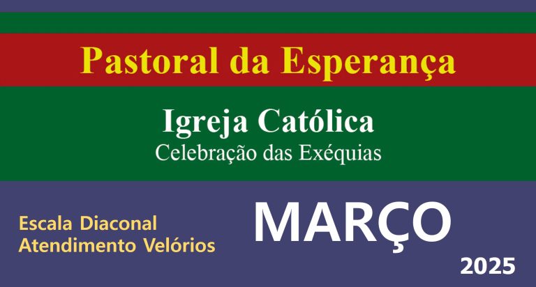 A Associação dos Diáconos da Arquidiocese de Ribeirão Preto (ADPARP) divulga a Escala de Exéquias (Celebração Exequial nos Velórios) para o mês de MARÇO de 2025 (final de semana e segunda-feira) para atendimento nos velórios de Ribeirão Preto. Este serviço faz parte do Ministério da Caridade aos que os diáconos são chamados a realizar.