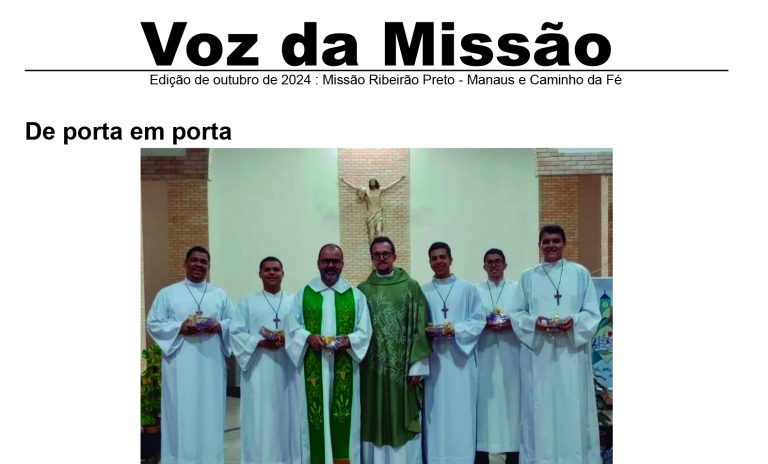 Os cinco seminaristas do Seminário São José e Propedêutico Bom Pastor, da Arquidiocese de Ribeirão Preto, acompanhados do reitor padre Marcus Vinícius Miranda, disponibilizam a edição do Jornal “Voz da Missão”