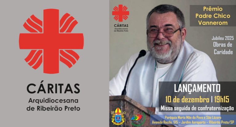 Na terça-feira, 10 de dezembro, às 19h15, na paróquia Maria Mãe do Povo e São Lázaro, no Jardim Aeroporto, o Lançamento do Prêmio Padre Chico Vannerom