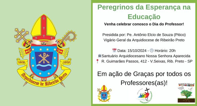 A Pastoral da Educação da Arquidiocese de Ribeirão Preto convida os Professores e Educadores para participarem da Missa em Ação de Graças pelo Dia do Professor, a ser celebrado em 15 de outubro