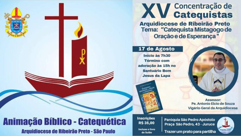 Com o tema: “Catequista Mistagogo de Oração e Esperança” e a assessoria do padre Antônio Elcio de Souza (Pitico), acontece em 17 de agosto, a XV Concentração Arquidiocesana de Catequistas da Arquidiocese de Ribeirão Preto
