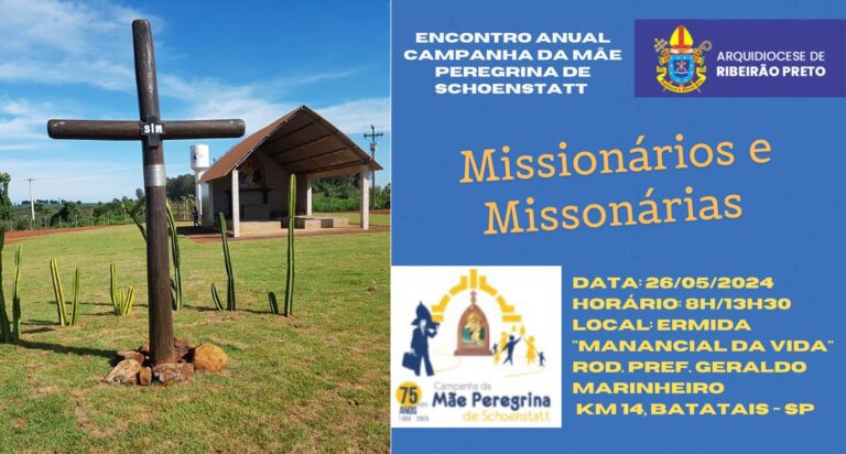 A Campanha da Mãe Peregrina de Schoenstatt da Arquidiocese de Ribeirão Preto realiza o Encontro Anual dos Missionários e Missionárias, no próximo domingo, 26 de maio, em Batatais