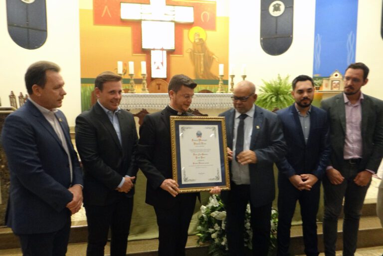 Em sessão solene da Câmara Municipal de Ribeirão Preto, realizada na paróquia São Francisco de Assis, em 02 de maio, o padre Luís Gustavo