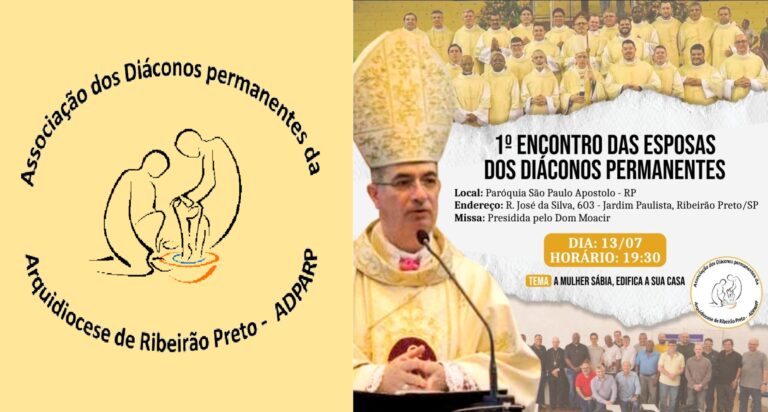 Com o tema: “A mulher sábia edifica a casa”, acontece na quinta-feira, 13 de julho, às 19h30, na paróquia São Paulo Apóstolo, no Jardim Paulista, em Ribeirão Preto, o “1º Encontro das Esposas dos Diáconos Permanentes da Arquidiocese de Ribeirão Preto”
