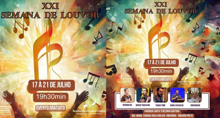 Com o tema: “Cantai e celebrai de todo coração os louvores ao Senhor”, acontece de 17 a 21 de julho, a XXI Semana de Louvor realizada pelo movimento Renovação Carismática Católica da Arquidiocese de Ribeirão Preto