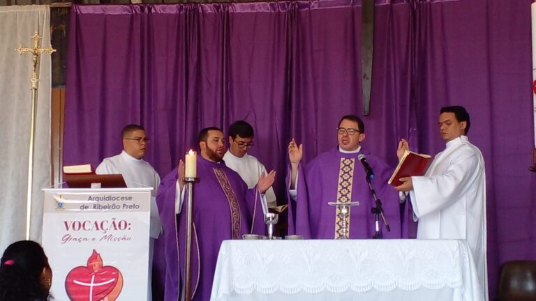 Os seminaristas do Ano Pastoral (Síntese) da Arquidiocese de Ribeirão Preto: Christian Aparecido Ferreira Batista, Leonardo Oliveira Silva e João Marcos da Silva Carvalho, convidam para a concelebração eucarística, presidida por Dom Moacir Silva, Arcebispo Metropolitano de Ribeirão Preto, na qual serão ordenados diáconos para o serviço do Povo de Deus