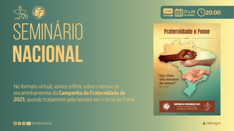 O Setor Campanhas da Conferência Nacional dos Bispos do Brasil (CNBB) realiza de 27 a 29 de setembro, de forma on-line, o Seminário Nacional da Campanha da Fraternidade 2023, cujo tema é “Fraternidade e Fome” e o lema “Dai-lhes vós mesmos de comer!” (Mt 14,16).