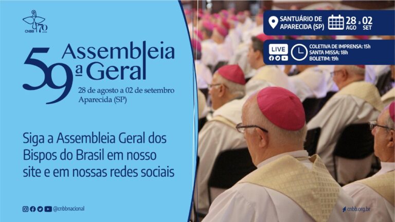A segunda etapa da 59ª Assembleia Geral da Conferência Nacional dos Bispos do Brasil (CNBB) acontece, de forma presencial, no Santuário Nacional de Nossa Senhora Aparecida, em Aparecida (SP), de 28 de agosto a 2 de setembro, como forma de garantir a votação dos temas que em função da presencialidade exigida pelo Estatuto da CNBB não puderam ser votados nos últimos dois anos em razão da pandemia.