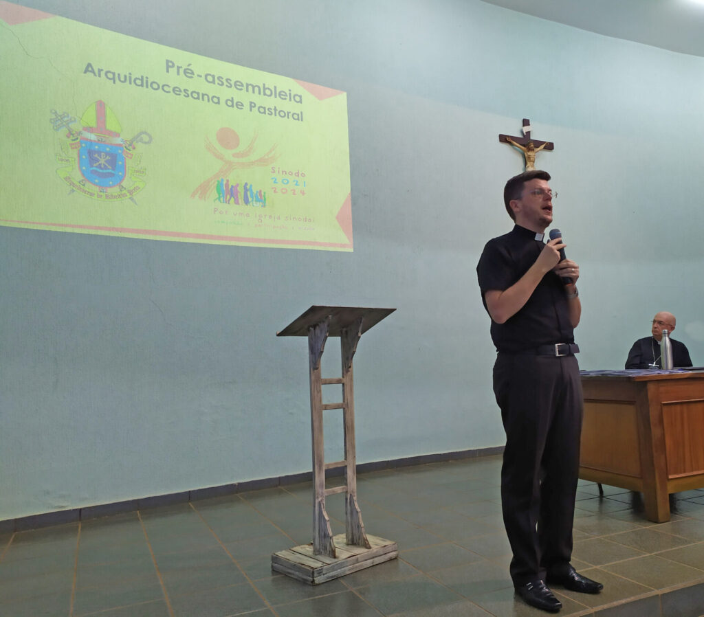 No terceiro e último tema pastoral o coordenador de pastoral fez uma exposição da Pré-assembleia Arquidiocesana de Pastoral, realizada em 28 de outubro, em Brodowski, e que reuniu 285 participantes entre padres, diáconos, seminaristas, representantes paroquiais e alunos da Escola Diaconal distribuídos em 21 grupos de trabalho. A Pré-assembleia seguiu a metodologia da Conversação Espiritual e buscou avaliar e refletir os seguintes documentos: 1) Diretrizes Gerais da Ação Evangelizadora da Igreja no Brasil (CNBB) e Diretrizes da Ação Evangelizadora da Arquidiocese de Ribeirão Preto (2019-2023); 2) Relatório da Síntese Arquidiocesana do Sínodos dos Bispos e Documento de Trabalho para a Etapa Continental (Sínodo); e 3) Para uma Igreja Sinodal em saída para as periferias: reflexões e propostas a partir da Primeira Assembleia Eclesial da América Latina e do Caribe (Celam).