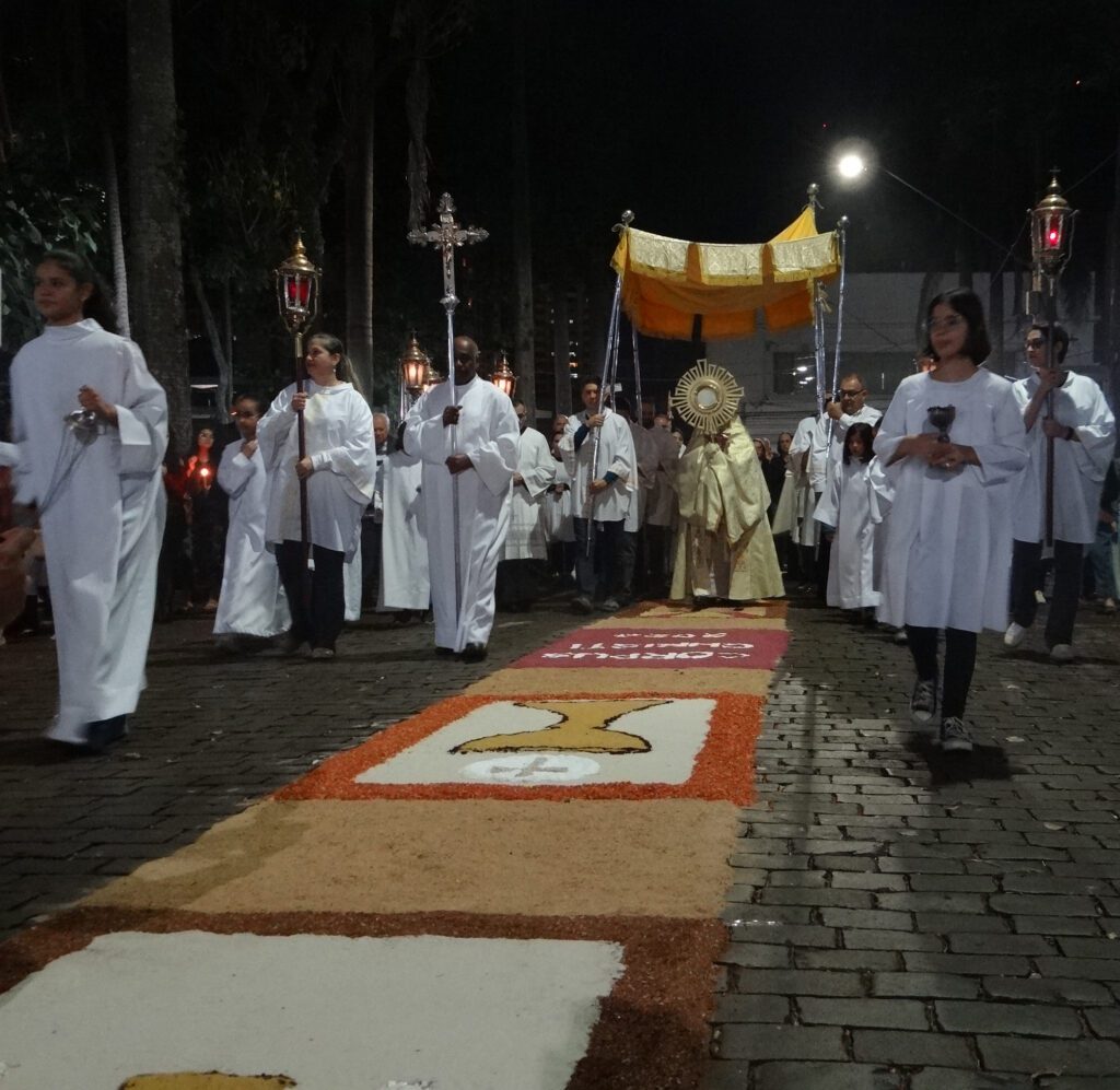 O arcebispo metropolitano de Ribeirão Preto, dom Moacir Silva, presidiu a Eucaristia na solenidade do Santíssimo Corpo e Sangue de Cristo (Corpus Christi), 30 de maio, às 18h30, na Catedral Metropolitana de São Sebastião. Concelebraram os padres: João Marcos da Silva Carvalho (vigário paroquial); Antônio Élcio de Souza (mestre de cerimônias); e serviu nas funções litúrgicas o diácono Áureo João Nunes Ribeiro. Neste ano a comunidade paroquial da Catedral preparou no bolsão do estacionamento defronte as escadarias da igreja um lindo tapete colorido feito com pó de serragem.