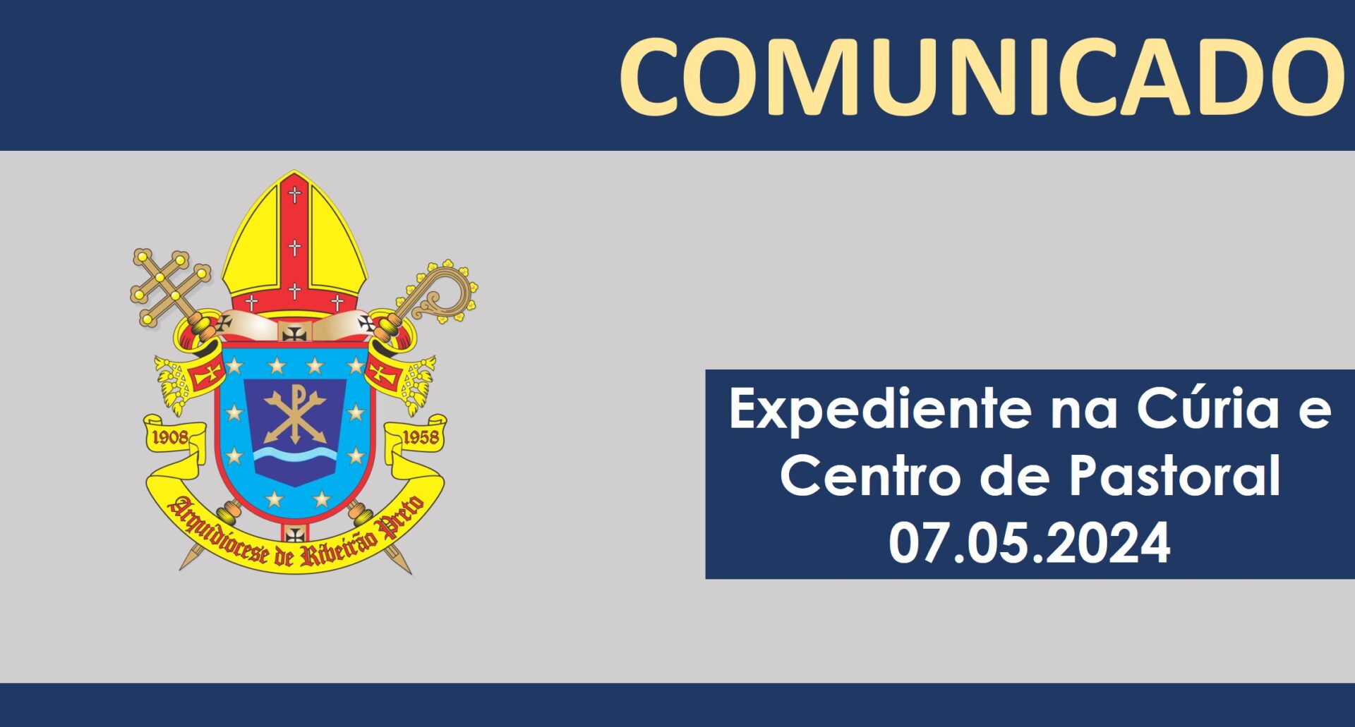 Comunicado: Expediente na Cúria e Centro de Pastoral no dia 7 de maio (terça-feira)