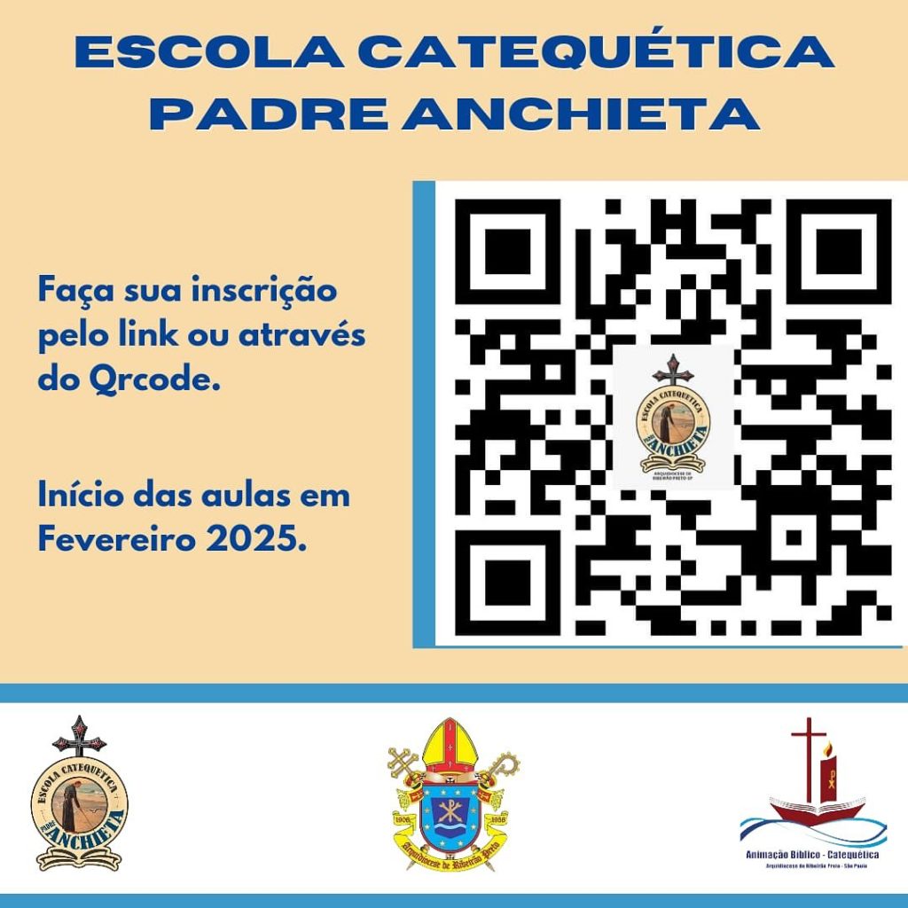 A Comissão Animação Bíblico-Catequética da Arquidiocese de Ribeirão Preto comunica a abertura das inscrições para a próxima turma “Escola Arquidiocesana de Catequese Padre Anchieta” a partir de fevereiro de 2025.