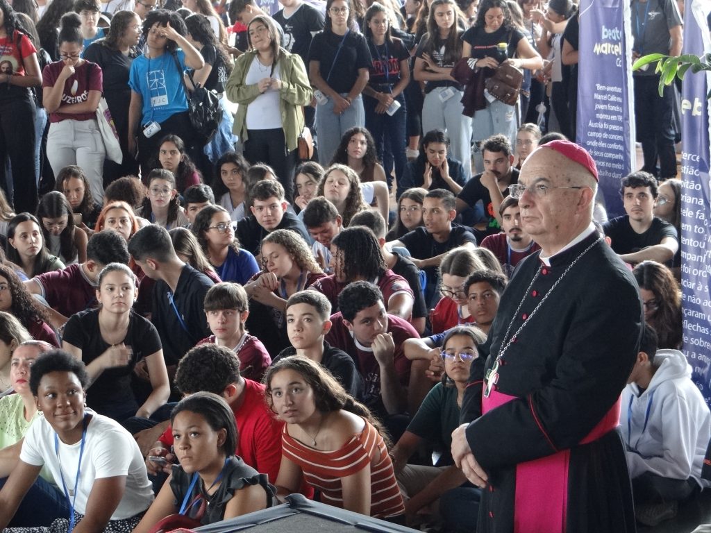 O assessor jovem do Setor Juventude, Vinicius Fabbio Carrocini, falou da importância de reunir a juventude para celebrar o Dia Nacional da Juventude. “Esse é um dia celebrativo, é um dia que nós contemplamos o trabalho do ano inteiro. Então, nós reunimos os jovens que trabalham o ano inteiro, em grupos pequenos, às vezes com todas as dificuldades, para que eles cheguem hoje e possam celebrar algo maior juntos. É um dia de fato muito importante para a gente poder olhar para a juventude que às vezes está tão separada, parece fragmentada, e nem sempre consegue estar todo mundo junto”, disse Vinicius.