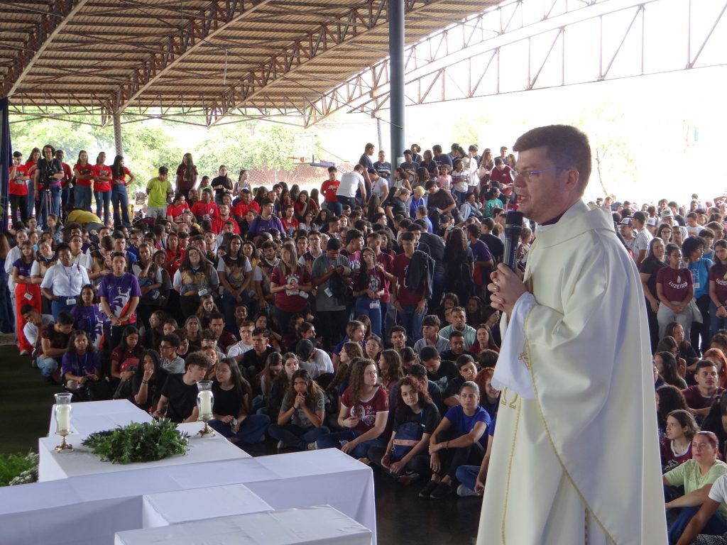 Na continuidade o padre Vinícius Cestari estendeu os agradecimentos em nome do Setor Juventude. “Se hoje somos mais de 2 mil jovens, é porque houve dedicação da paróquia São Francisco, do Setor Juventude e de tantas mãos que se dispuseram. Eles há meses vêm trabalhando no Dia Nacional da Juventude, na divulgação, no preparo, no cuidado com cada detalhe que hoje vocês aqui vão experimentar. Por isso, padre Luís Gustavo, em nome do Setor Juventude, obrigado. Agradeço de coração, porque se hoje tem essa paleta de cores, é porque o Senhor ajudou a formar essa aquarela”, concluiu padre Vinícius.