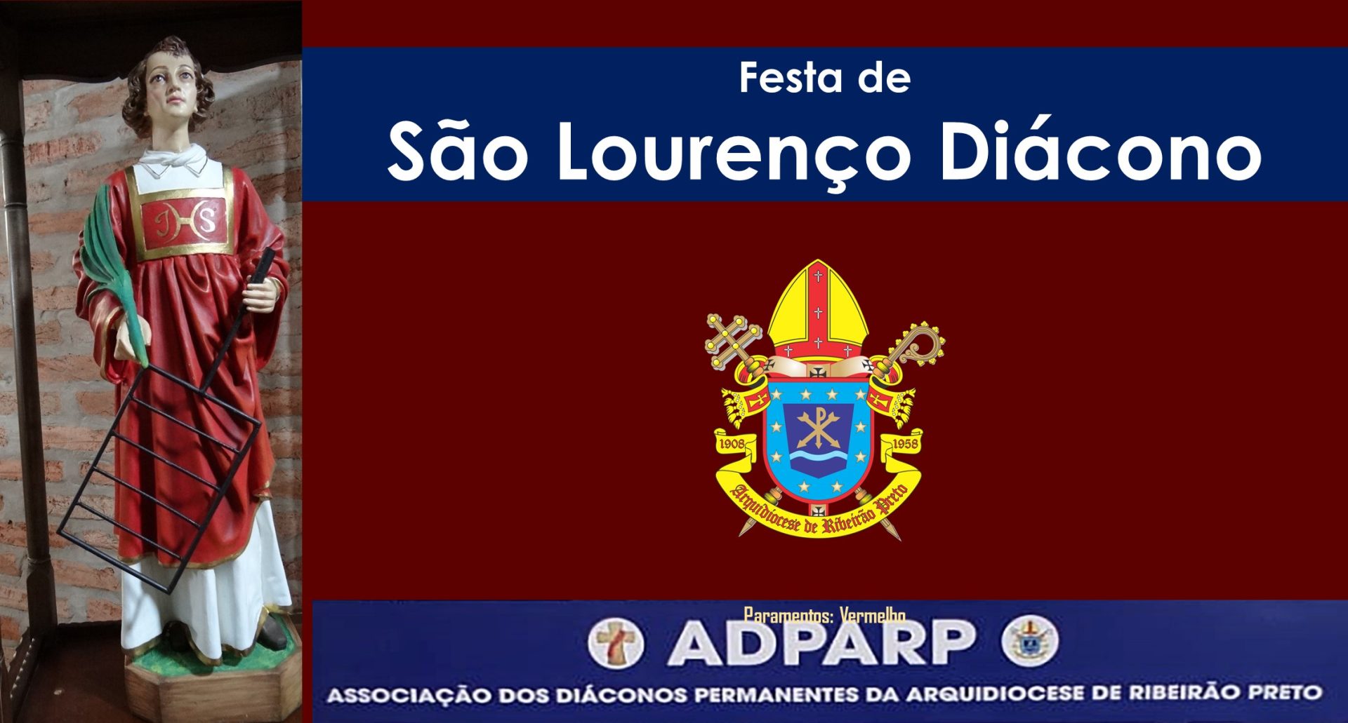 A Associação do Diaconado Permanente da Arquidiocese de Ribeirão Preto (ADPARP) se reunirá no dia 09 de agosto, às 20h, na Paróquia Bom Jesus da Lapa, em Ribeirão Preto, para a celebração eucarística presidida pelo arcebispo dom Moacir Silva, na festa e memória de São Lourenço, patrono dos diáconos.