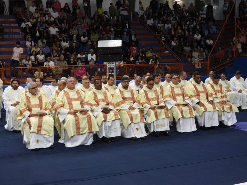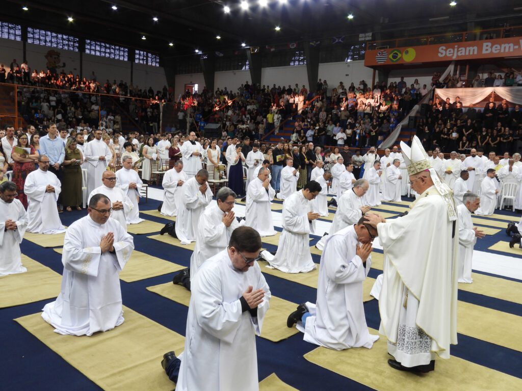 Como o lema diaconal: “O Senhor enviou-me a anunciar a boa-nova aos pobres, a proclamar a libertação dos oprimidos” (Lucas 4, 18), no Ano Santo do Jubileu 2025, o Arcebispo Metropolitano de Ribeirão Preto, Dom Moacir Silva, ordenou 32 Diáconos Permanentes para o serviço da Palavra, da Liturgia e da Caridade na Arquidiocese de Ribeirão Preto. A concelebração eucarística, com o rito da ordenação diaconal, ocorreu em 09 de agosto, às 16h, no Ginásio de Esportes Pedro Ferreira dos Reis (Docão), em Sertãozinho. Eles percorreram o itinerário de discernimento vocacional e formativo, correspondente a um ano de propedêutico e seis de formação, na IV Turma da Escola Diaconal Arquidiocesana São Lourenço. O diaconato permanente, restaurado pelo Concílio Vaticano II (1962-1965), é o primeiro grau do sacramento da ordem, o segundo grau é o presbiterato, e o terceiro, o episcopado. Os diáconos são pais de família, com vida matrimonial estável, e para serem admitidos como candidatos devem possuir vida ativa na comunidade paroquial, serem aceitos pelos fiéis da comunidade, e a esposa precisa concordar e participar ativamente.