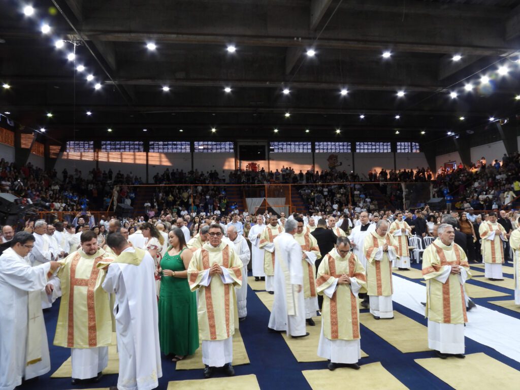 Ao meditar o Evangelho, o arcebispo exaltou a importância da unidade e da comunhão, e principalmente a sinodalidade. Os diáconos caminham juntos com a Igreja Local. “No Evangelho Jesus reza: ‘guarda-os em teu nome, para que eles sejam um, como nós somos um’. Unidade! Aqui não posso deixar de citar uma palavra do Documento Final do Sínodo: a sinodalidade é o caminhar juntos dos Cristãos com Cristo e para o Reino de Deus, em união com toda a humanidade; orientada para a missão, implica o encontro em assembleia nos diversos níveis da vida eclesial, a escuta recíproca, o diálogo, o discernimento comunitário, a formação de consensos como expressão da presença de Cristo no Espírito e a tomada de uma decisão em corresponsabilidade diferenciada. Nesta linha, compreendemos melhor o que significa que a sinodalidade é dimensão constitutiva da Igreja (cf. CTI, n.º 1). Em termos simples e sintéticos, pode se dizer que a sinodalidade é um caminho de renovação espiritual e de reforma estrutural para tornar a Igreja mais participativa e missionária, isto é, para a tornar mais capaz de caminhar com cada homem e mulher irradiando a luz de Cristo (cf. DF, 28)”.
