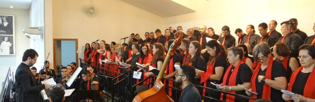O padre Christian, antes do momento dos agradecimentos, partilhou um sonho vocacional, isto é, a iniciativa de organizar um coral formado por vozes das muitas paróquias da arquidiocese, que reuniu 80 vozes, de 19 paróquias, de 9 municípios da Arquidiocese de Ribeirão Preto. “Antes de agradecermos a presença de vocês, nós gostaríamos de partilhar com vocês um sonho, que foi partilhado por mim, pelo Leonardo, padre Pitico e dom Moacir, ao longo da caminhada vocacional e formativa no seminário. Não é segredo que Leonardo e eu gostamos muito de música, e tínhamos um sonho de formar algum trabalho de música litúrgica na arquidiocese, e é com muita alegria que na nossa ordenação hoje nós tivermos a gênese deste sonho aqui lançada com tantas pessoas ali no mezanino, não é um grupo definido, mas pessoas de várias paróquias, de foranias diferentes, e desde julho estão se encontrando semanalmente para ensaios e poder colaborar com a nossa ordenação nesta liturgia eucarística”, agradeceu padre Christian.