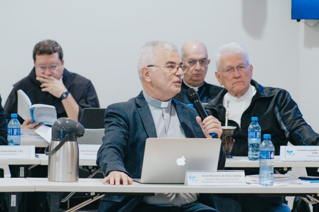 Dom Mauricio Jardim, da Comissão para a Ação Missionária, abordou as publicações produzidas pela Comissão, a exemplo do texto de estudo 117 da CNBB, aprovado pelo Conselho Permante em novembro de 2024, no qual retoma a temática do Projeto Igrejas-Irmãs. Também a publicação “Conselhos Missionários”, fruto do Programa Missionário Nacional.