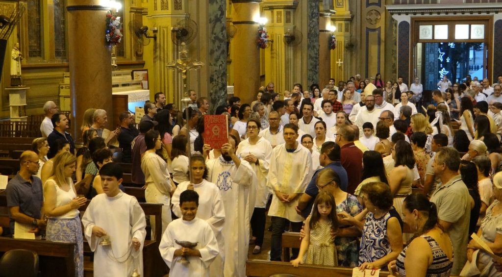 O arcebispo Dom Moacir Silva presidiu na noite de 31 de dezembro de 2024, a Solenidade de Santa Maria, Mãe de Deus, na Catedral Metropolitana de São Sebastião, tendo como concelebrante o pároco os padres Francisco Jaber Zanardo Moussa e João Marcos da Silva Carvalho. Nesta solenidade, na oitava do Natal, reafirmamos a ‘maternidade divina de Maria’, definida no Concílio de Éfeso, em 22 de junho de 431, e instituída a sua festa litúrgica pelo Papa Pio XI, em 1931, e também comemoramos o 58º Dia Mundial da Paz, instituído em 1968, por Paulo VI.