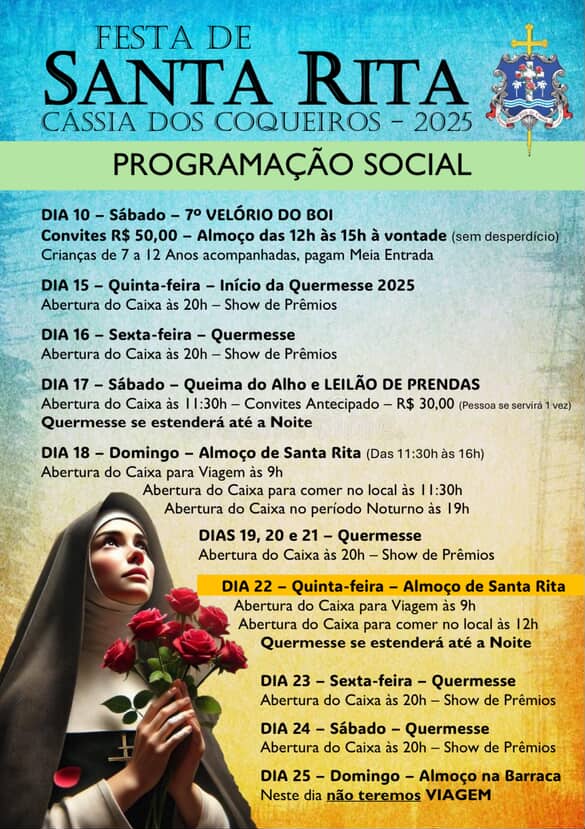 Festa de Santa Rita de Cássia em Cássia dos Coqueiros 2025
