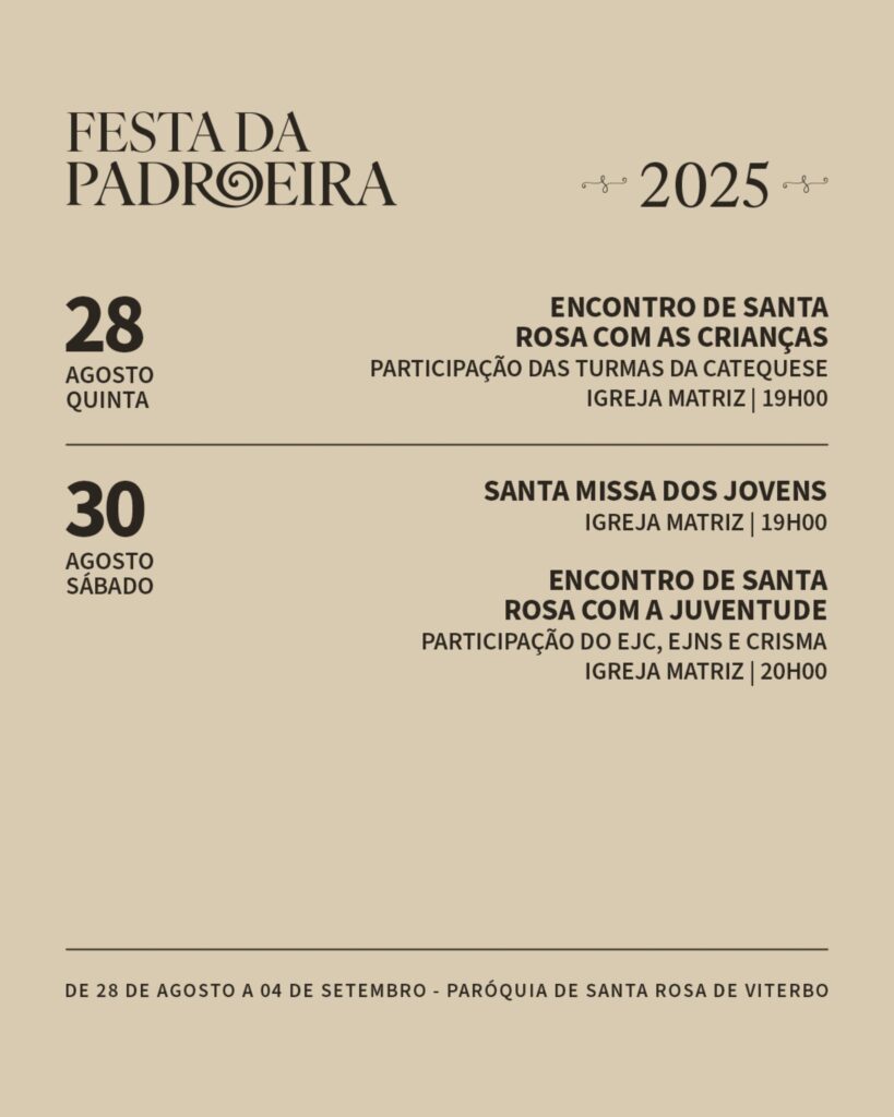 Festa em louvor a padroeira Santa Rosa de Viterbo 2025