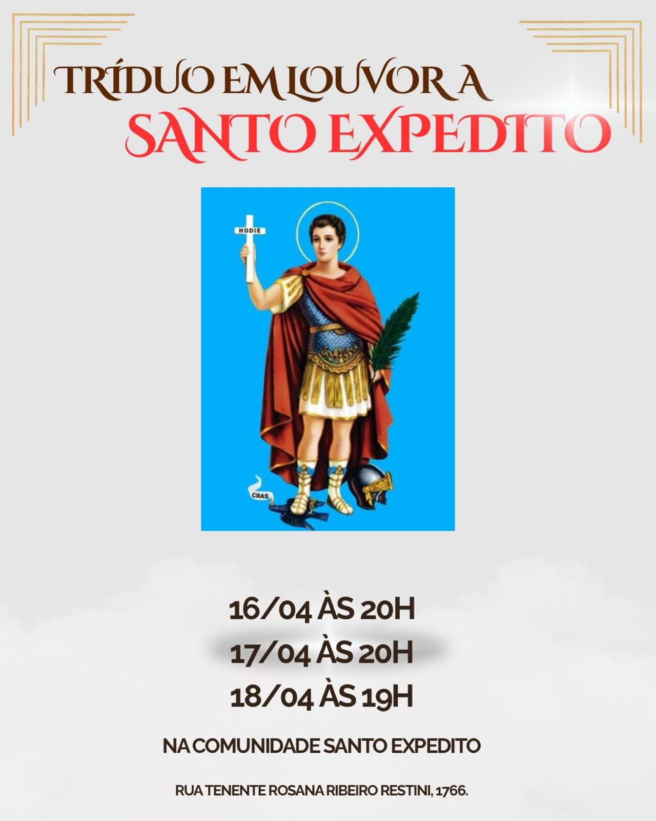 A Comunidade Santo Expedito, no Jardim Diva Tarla de Carvalho, promove o tríduo e festa do padroeiro: