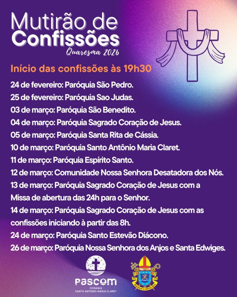 Para atendimento de confissões entre em contato com as secretarias paroquiais: