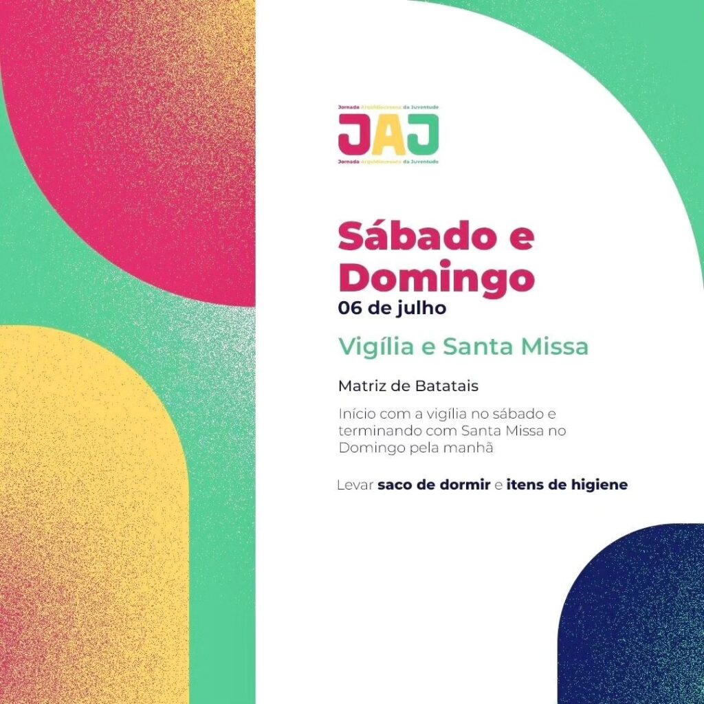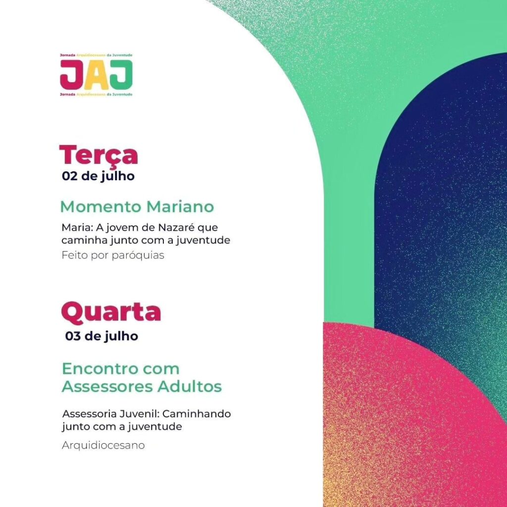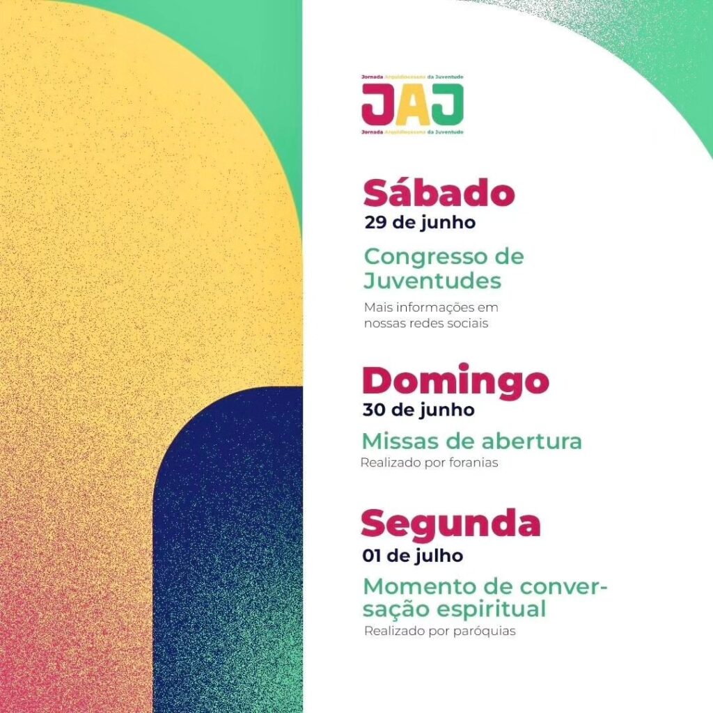 O Setor Juventude da Arquidiocese de Ribeirão Preto realiza a Jornada Arquidiocesana da Juventude (JAJ). A jornada acontece de 29 de junho 7 de julho e inclui na programação atividades nas paróquias, foranias ou cidade, e o momento arquidiocesano.