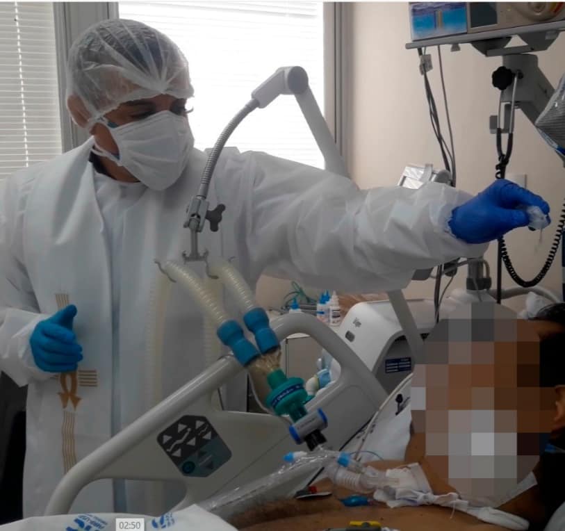 Para o padre Josirlei, o momento de fé e esperança, não era um cuidado só como Ramon, mas também com toda equipe de saúde. “Durante tudo isso que estamos passando, muitas vezes nos perguntamos onde está Deus que não responde às nossas orações. Ele está aqui e a resposta dele se dá através da mão de cada profissional de saúde”, explica o capelão. “Então, Deus não silenciou, ele se faz presente. Por isso, muito obrigado”, completa agradecendo à equipe.