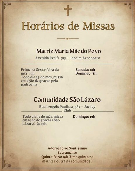 Quinta-feira: 19h (Igreja Matriz)
