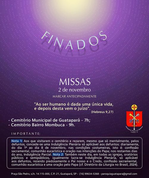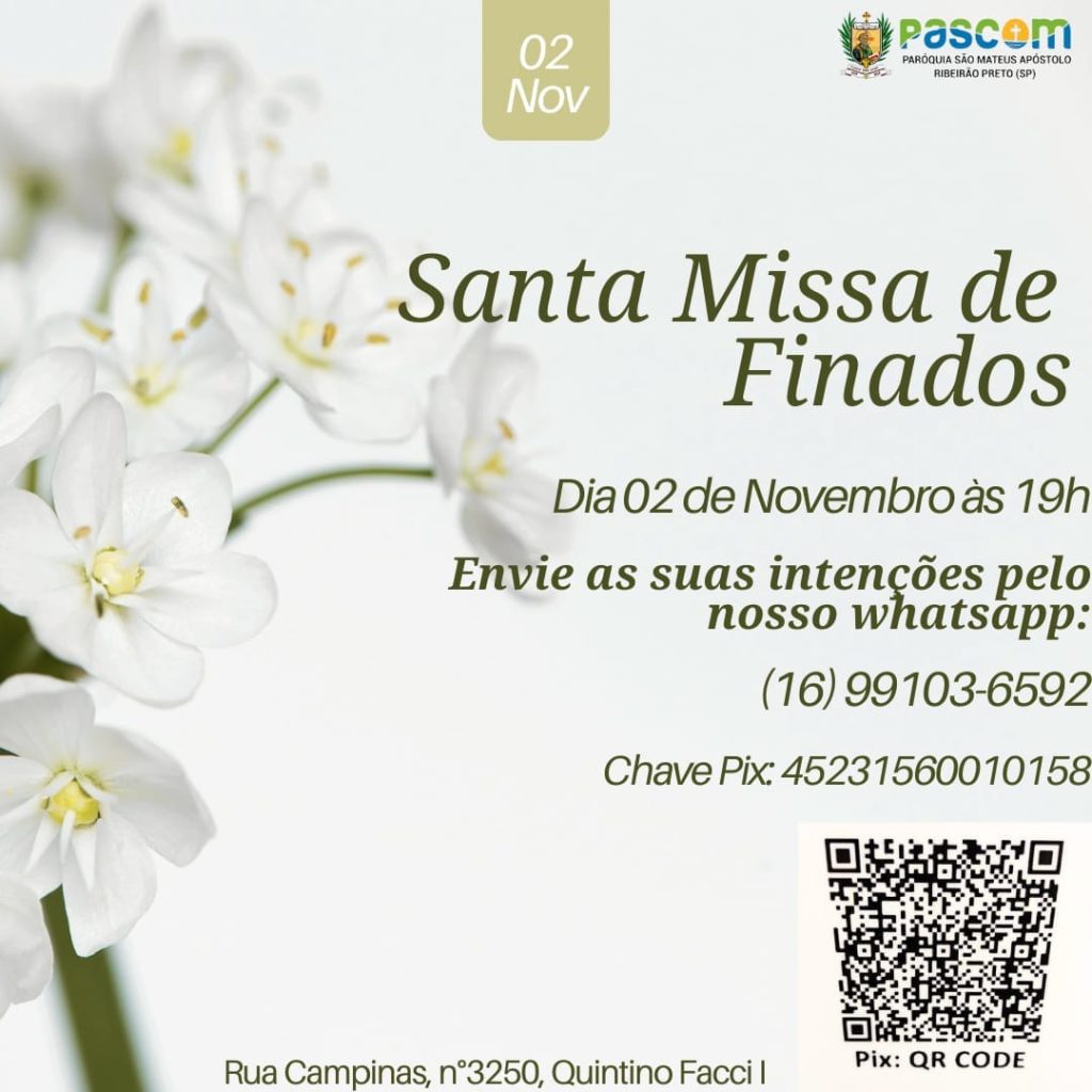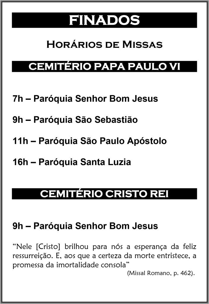 Paróquia São Pedro Apóstolo – Missa no Cemitério: 8h